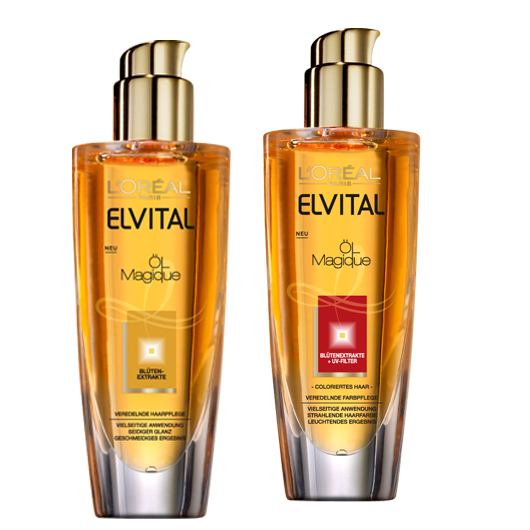 Curiosidade: Vocês sabiam que na Alemanha, a linha Elseve da L’Oréal se chama Elvital? E lá o Óleo Extraordinário se chama Öl Magique! E tem mais! Existe um segundo tipo, para cabelos coloridos, com filtro solar! Agora é torcer para chegar o Óleo Extraordinário para Cabelos Coloridos por aqui também, não é? Brisa também é cultura! Dá uma olhadinha na foto! 😉