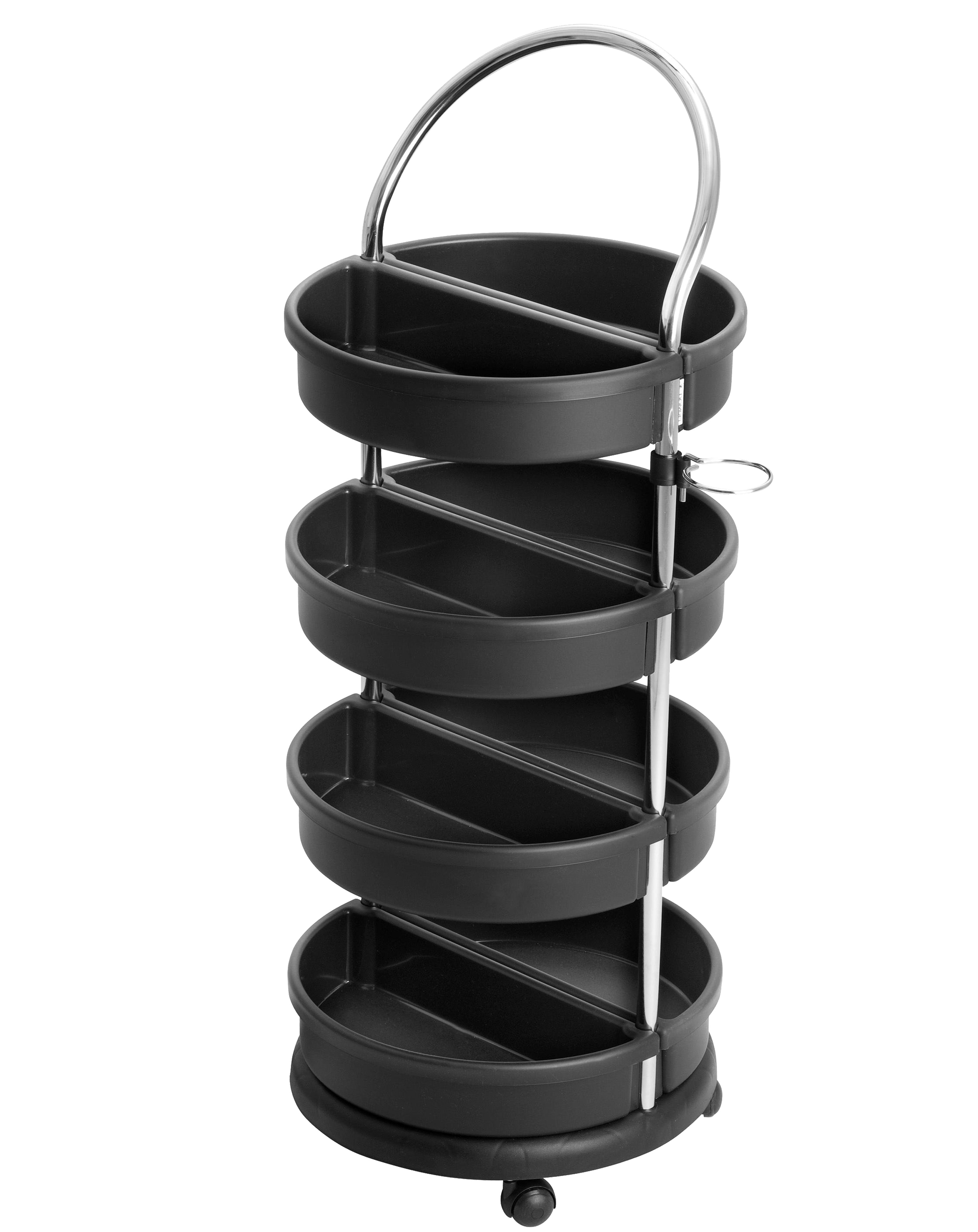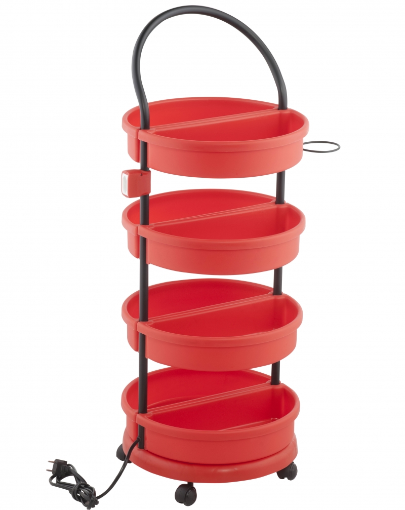 O Carrinho Multiuso possui 8 bandejas, tomada embutida e suporte para secador. Um produto de design clean, combina perfeitamente com o salão de beleza.