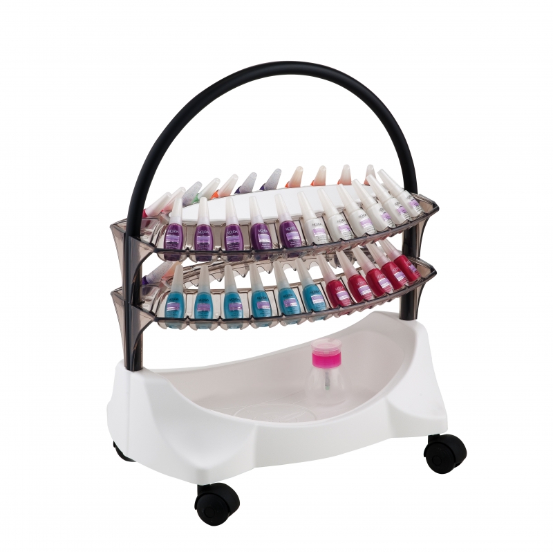O Carrinho Auxiliar Manicure é ideal para profissionais manicures e pedicures. Organizador com capacidade para 120 esmaltes no tampo superior, possui 3 bandejas auxiliares. A linha manicure ainda conta com a versão Manicure Baby, uma versão compacta com uma bandeja.