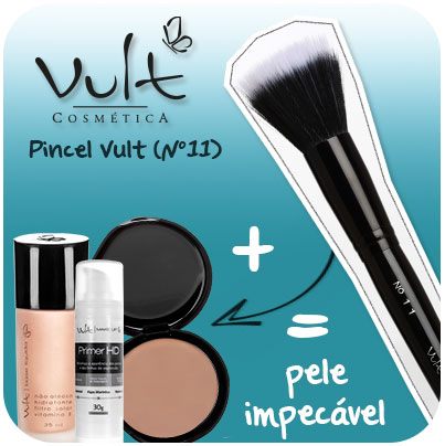 Pincel 11 da Vult – Duo Fiber. Este pincel, um dos mais conhecidos, é para quem gosta de praticidade e um acabamento polido à pele. Pode ser usado para aplicar base ou primer e as cerdas são sintéticas.