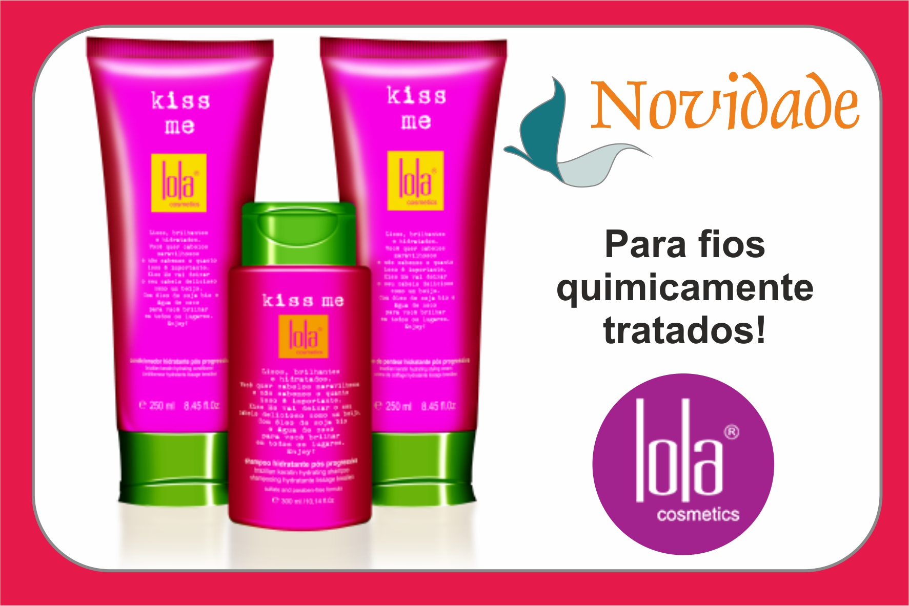 Indicado para cabelos quimicamente tratados, é composto por três produtos: shampoo, condicionador e creme de pentear. Liso, brilhante e hidratado, você quer um cabelo maravilhoso e nós sabemos o quanto isso é importante. Kiss Me vai deixar o seu cabelo delicioso como um beijo. Óleo de soja de bio e lavanda para você brilhar em todos os lugares. Enjoy!